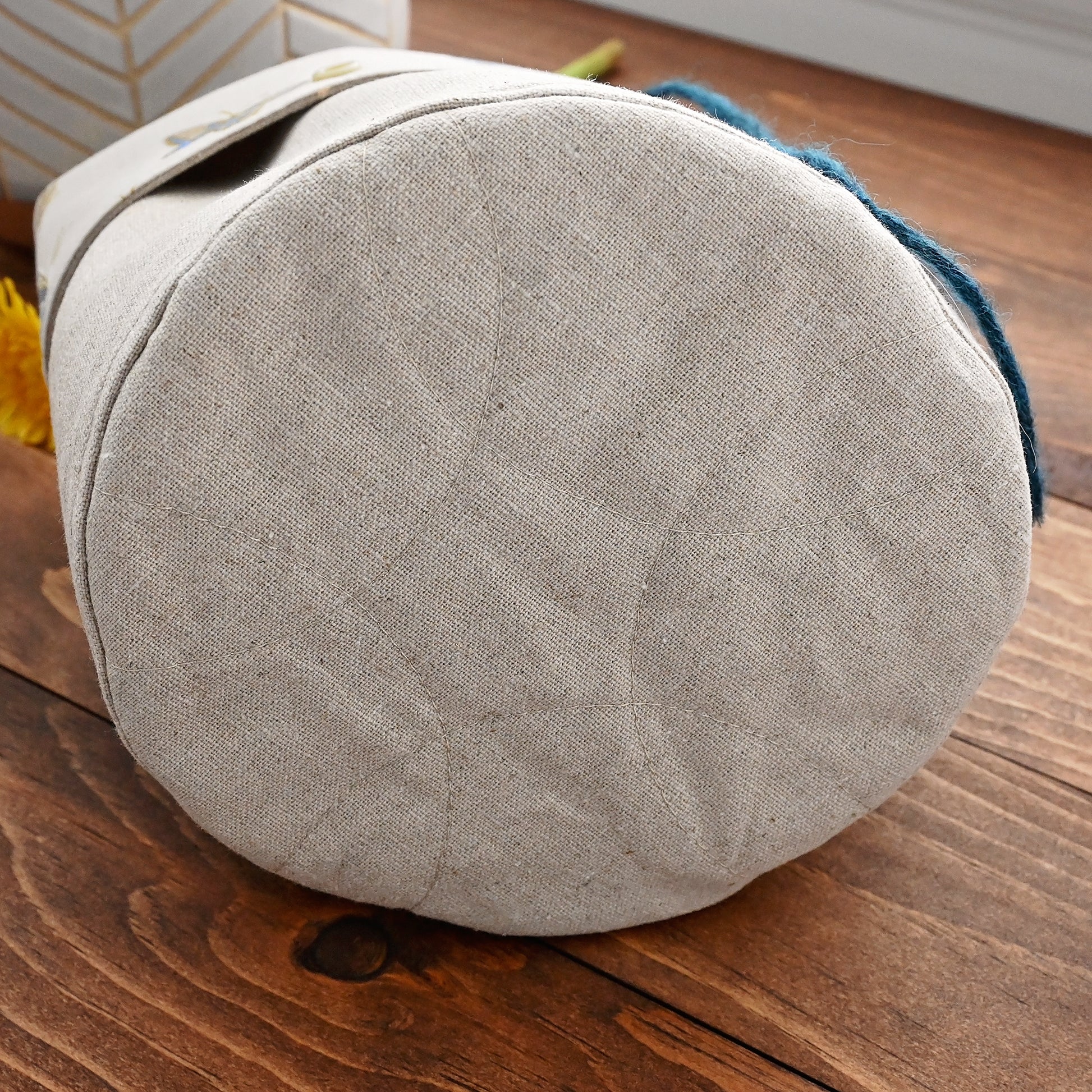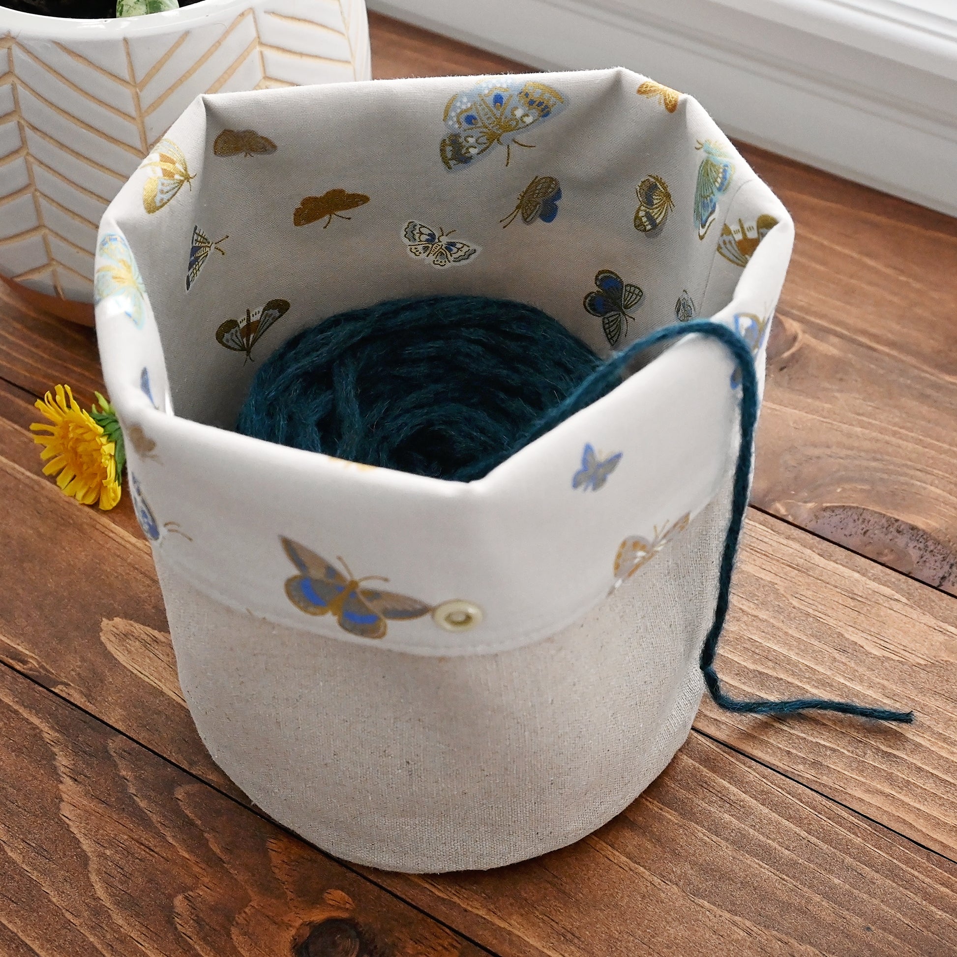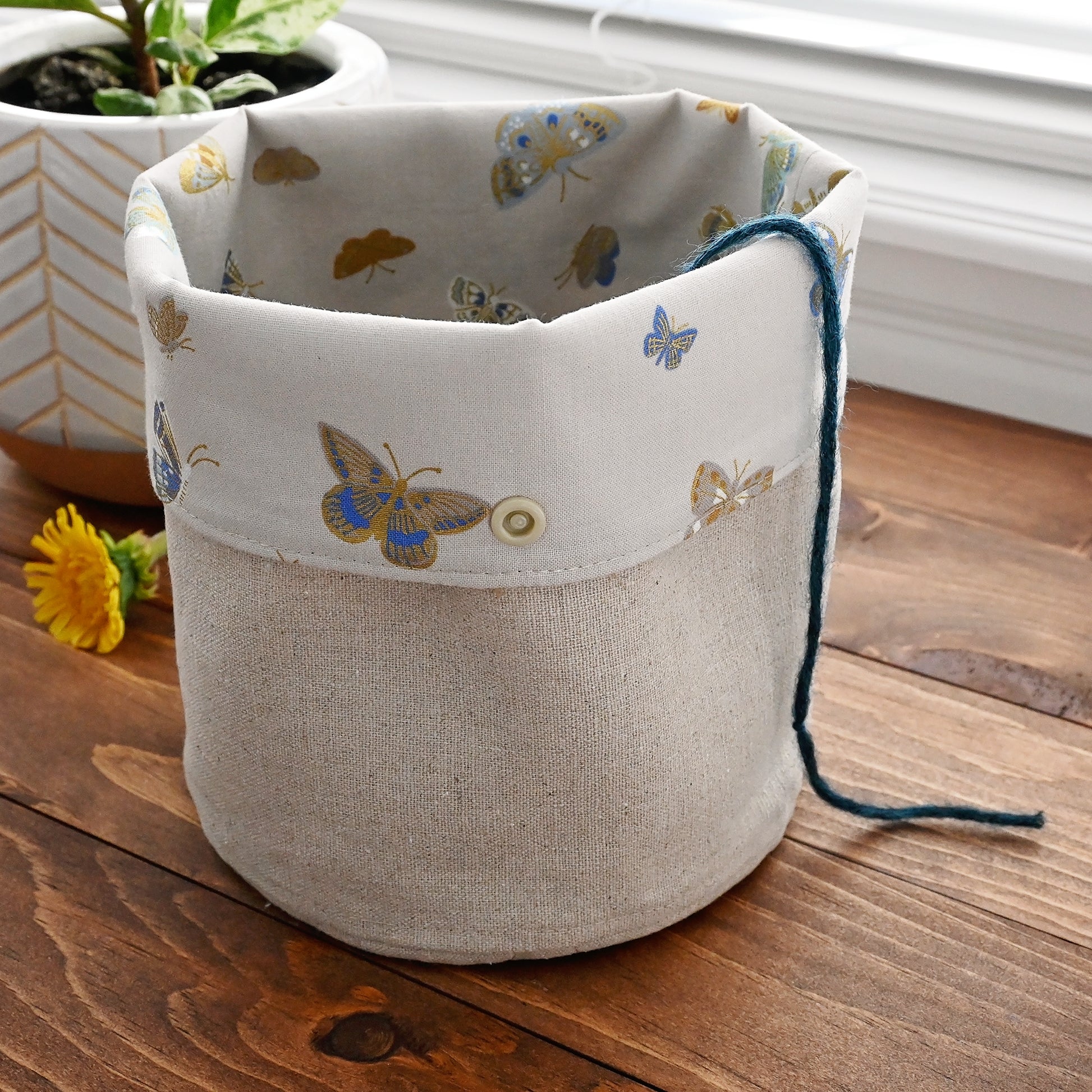 These handmade yarn cozies are thoughtfully designed specifically for centre-pull yarn cakes or balls, helping prevent them from collapsing and tangling. A snap closure at the top keeps the yarn cake securely contained while allowing your working yarn to pull through, snag free. These also have a quilted bottom, just like my bucket bags, and canvas exteriors which add structure and stability.