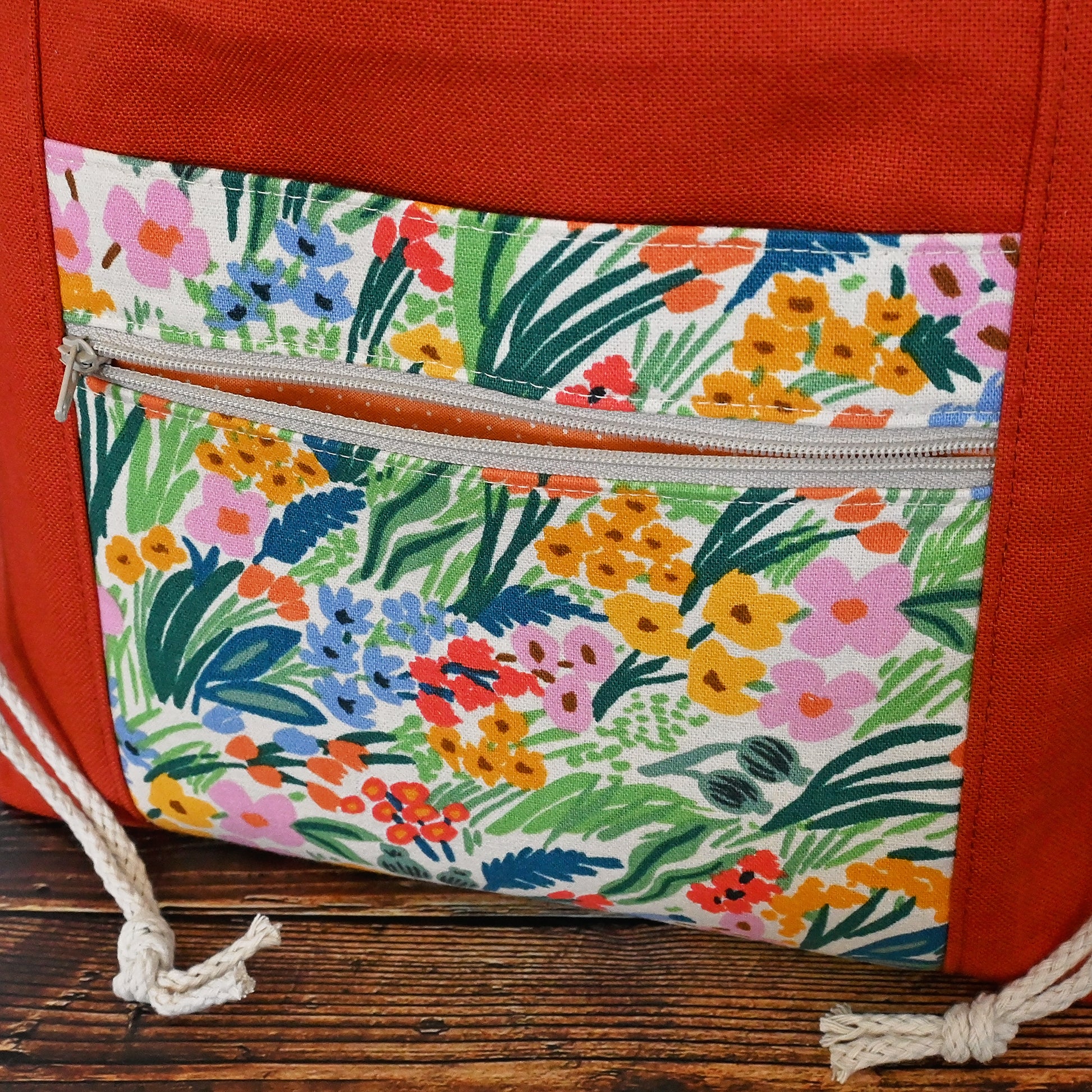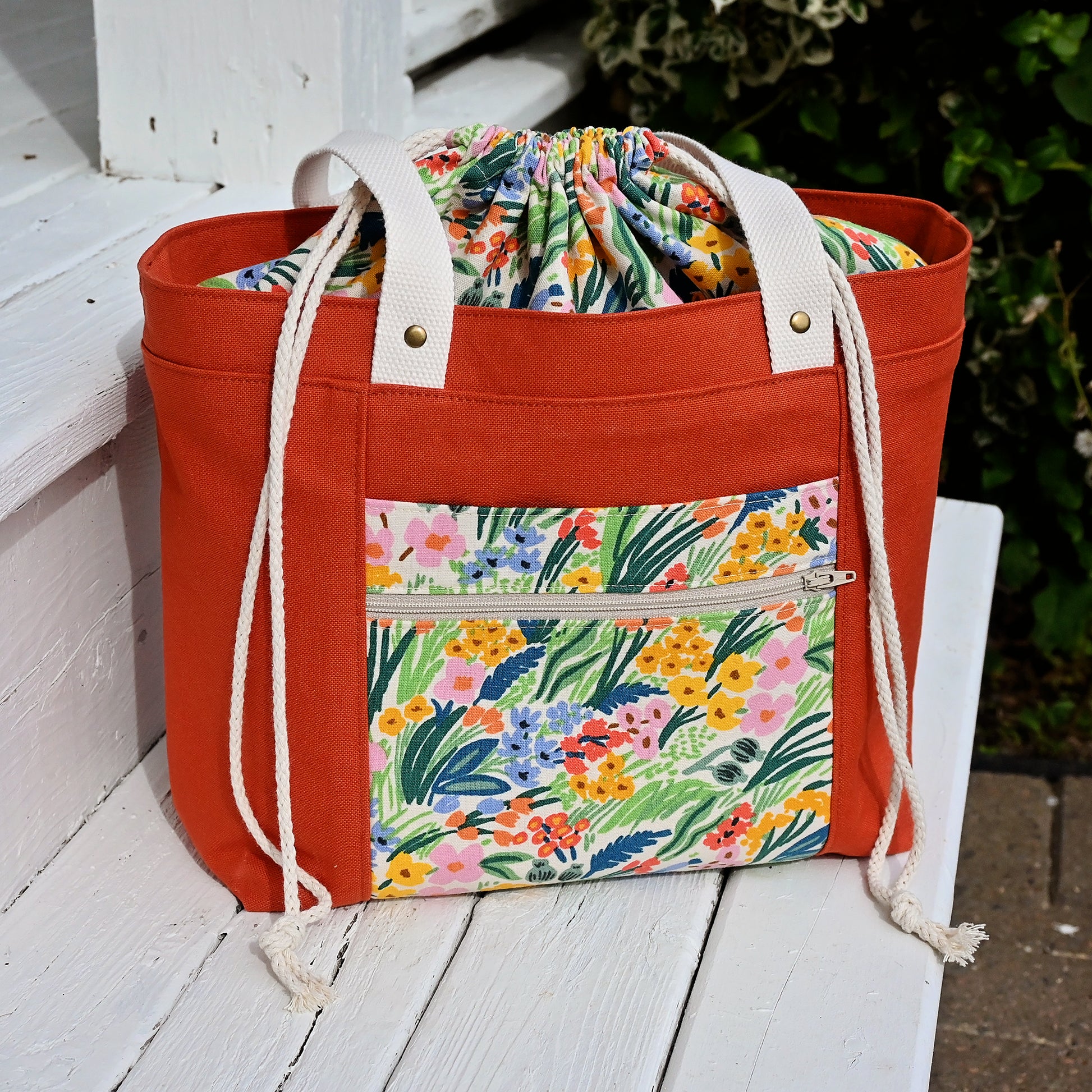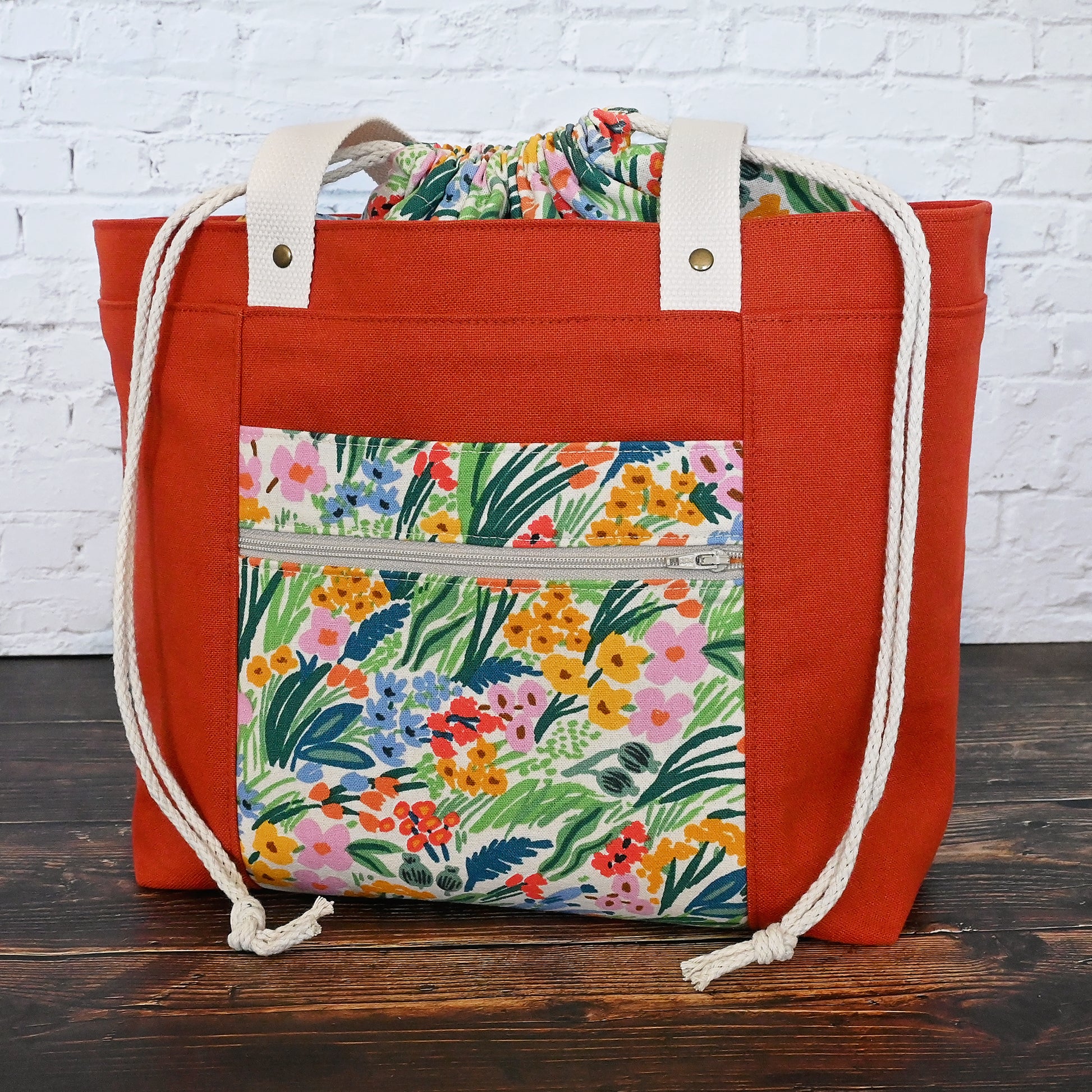The Field of Flowers Project Tote is thoughtfully designed for makers who love beauty and function in equal measure. The exterior is made from a sturdy terracotta cotton canvas and paired with a striking premium canvas from Rifle Paper Co's Bramble Collection. Β