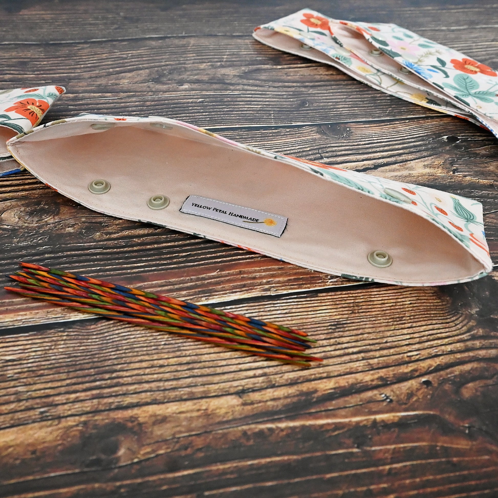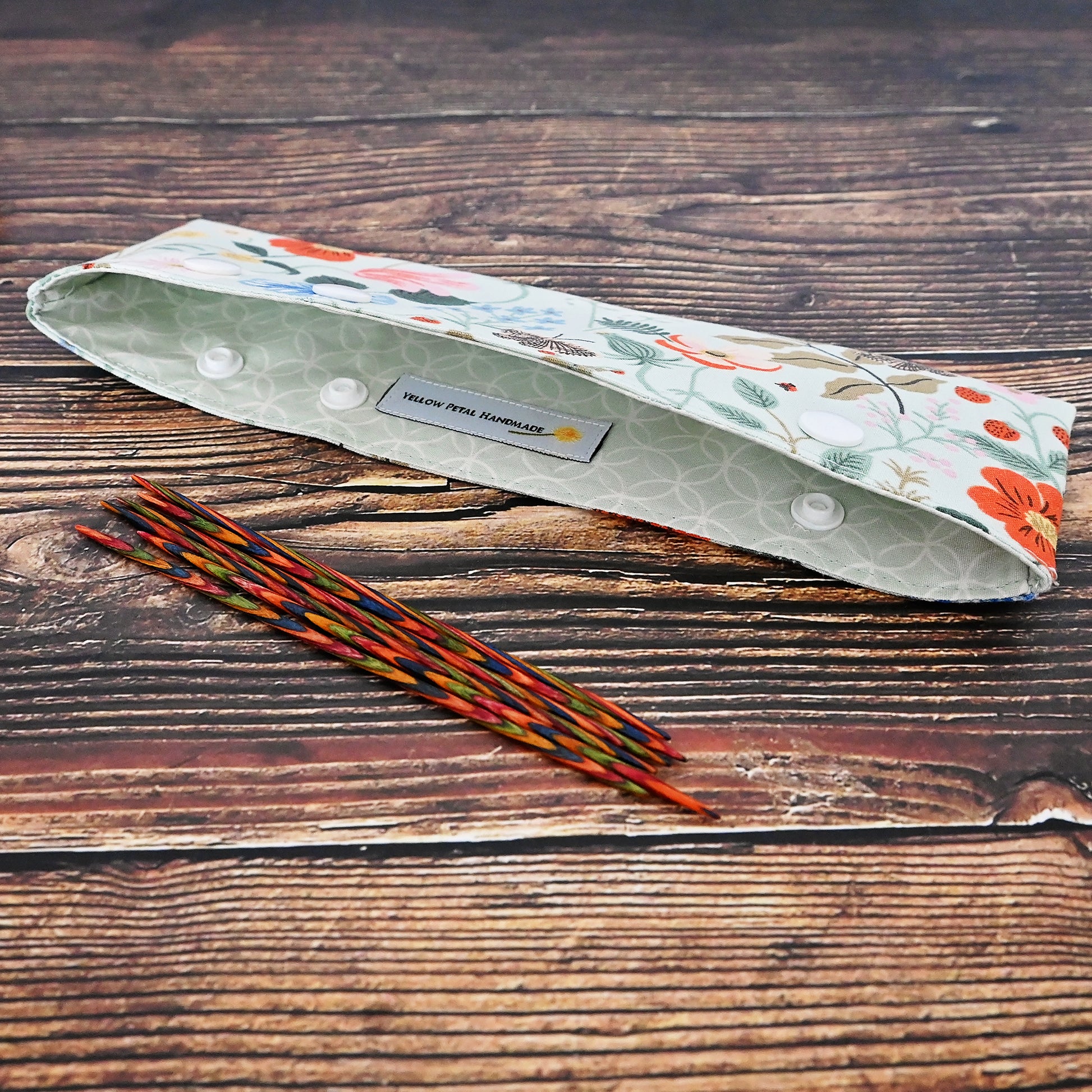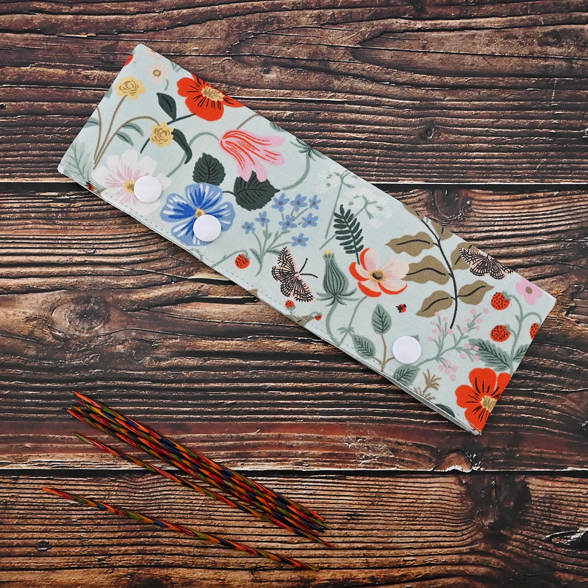 These cozies are perfect little WIP holders for DPNs or circular needles.  They secure your work and keep it from slipping off your needles.  These work well for small projects on DPNs, keeping everything in place while you're transporting your project.  They're also are great for keeping your larger projects on circular needles safe and secure - just pop your needles in the cozy when you've finished knitting and snap it closed to keep everything in place.
