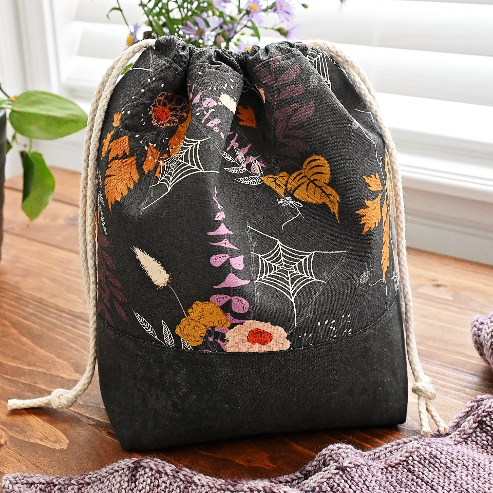 Midnight Webs Drawstring Project Bag