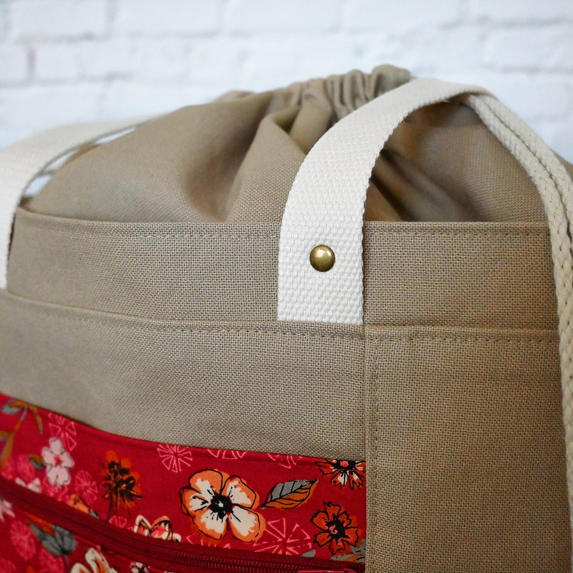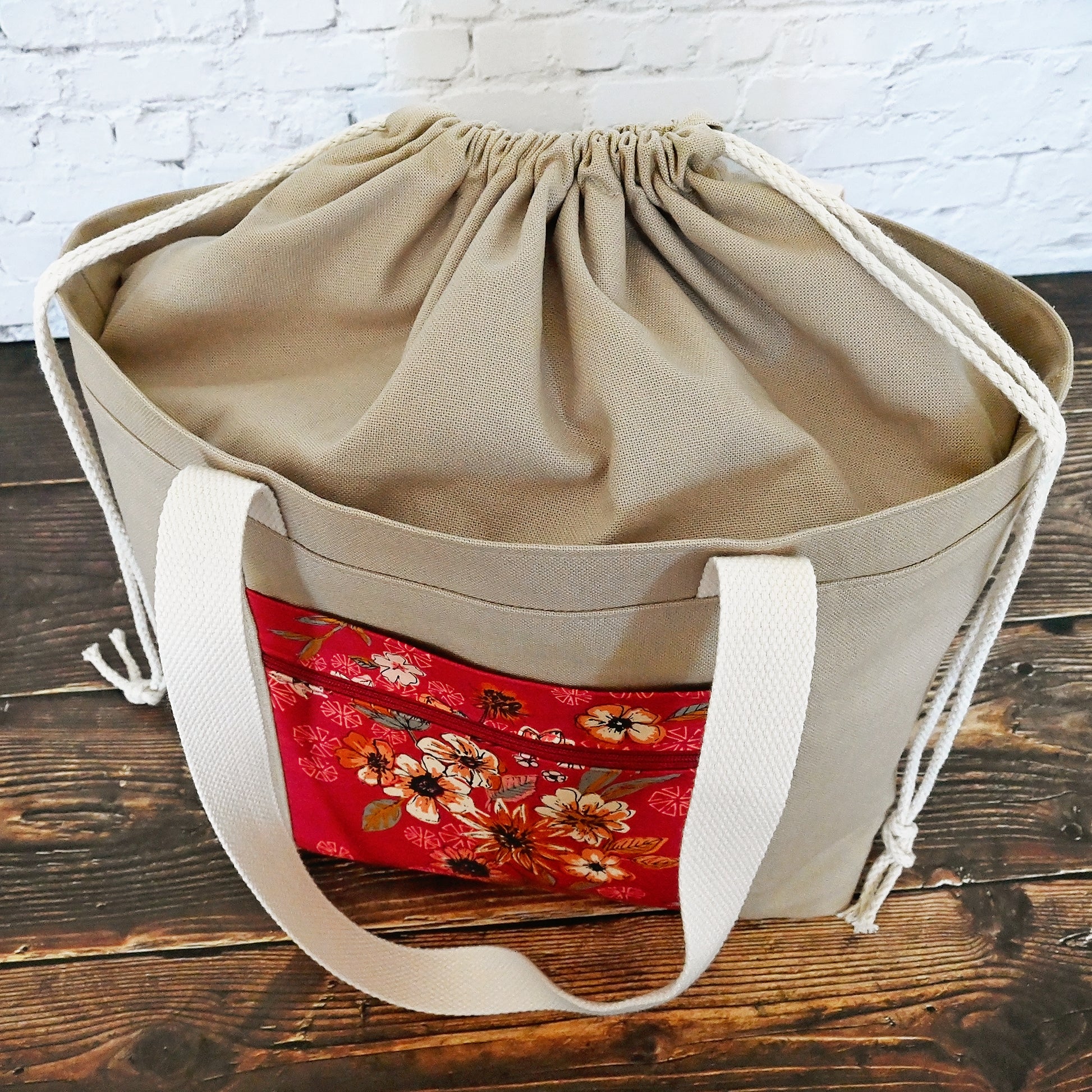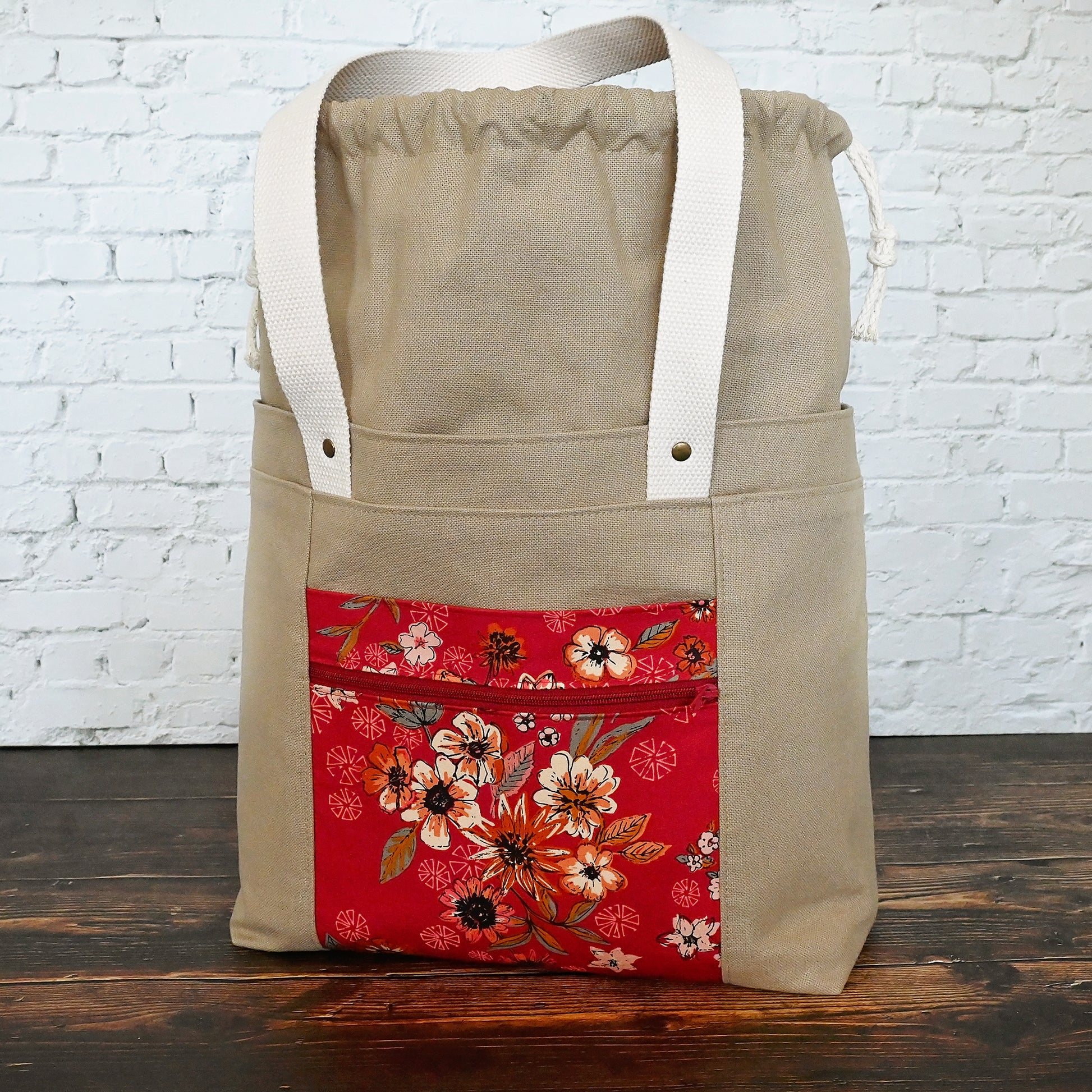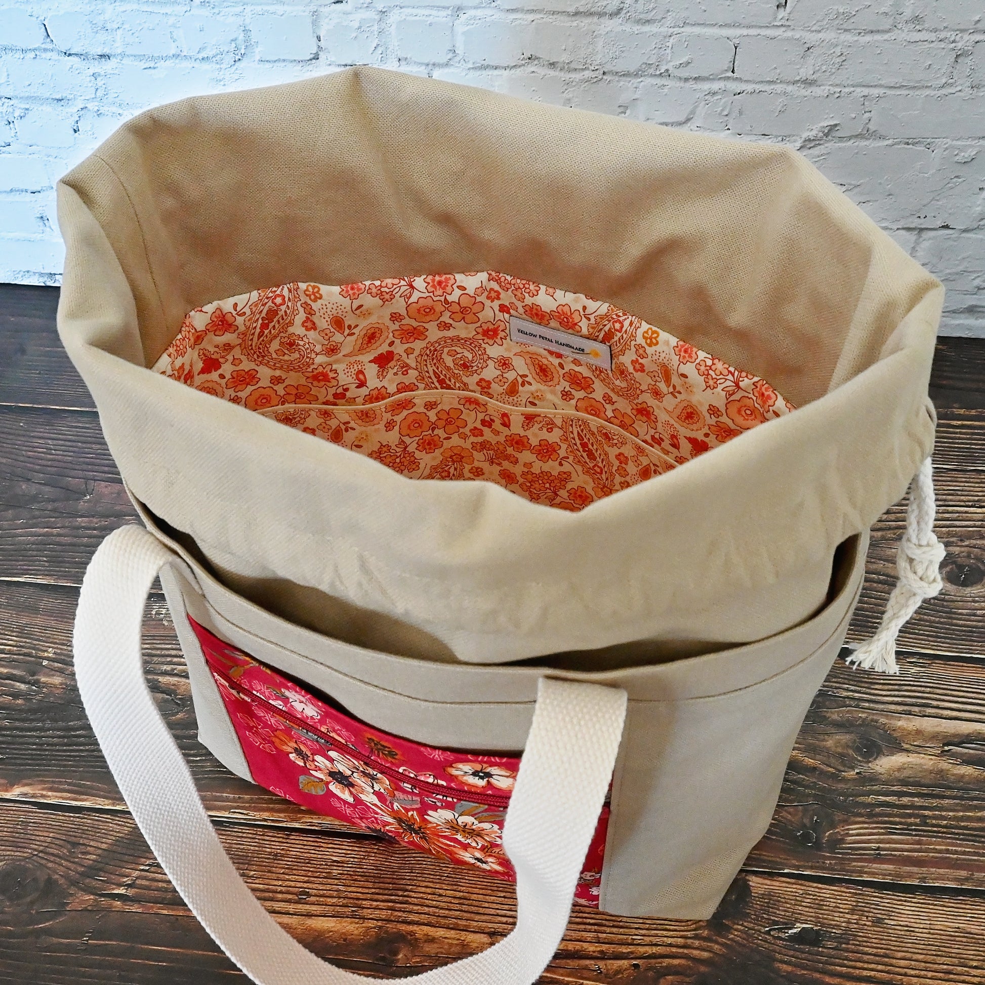 The Kindred Project Tote is thoughtfully designed for makers who love beauty and function in equal measure. Made from a sturdy beige cotton canvas and paired with striking premium cottons from Art Gallery Fabricsβ Kindred Collection, this tote features warm reds, creams, and peachy hues.
