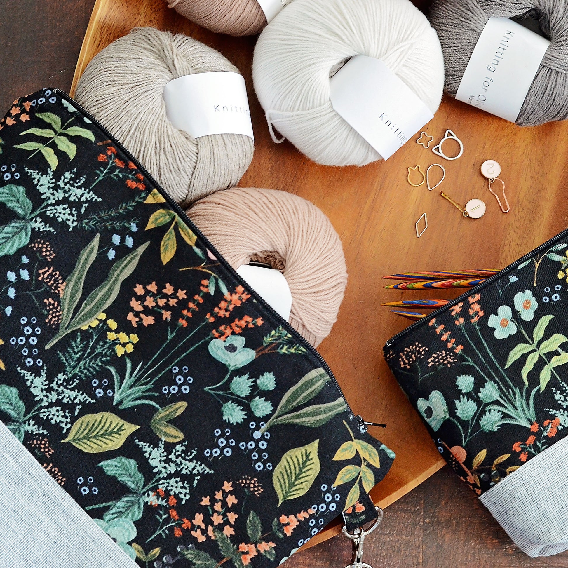 Made from Rifle Paper Co's Amalfi fabric line, this canvas and linen project bag will make a pretty addition to your knitting bag collection.